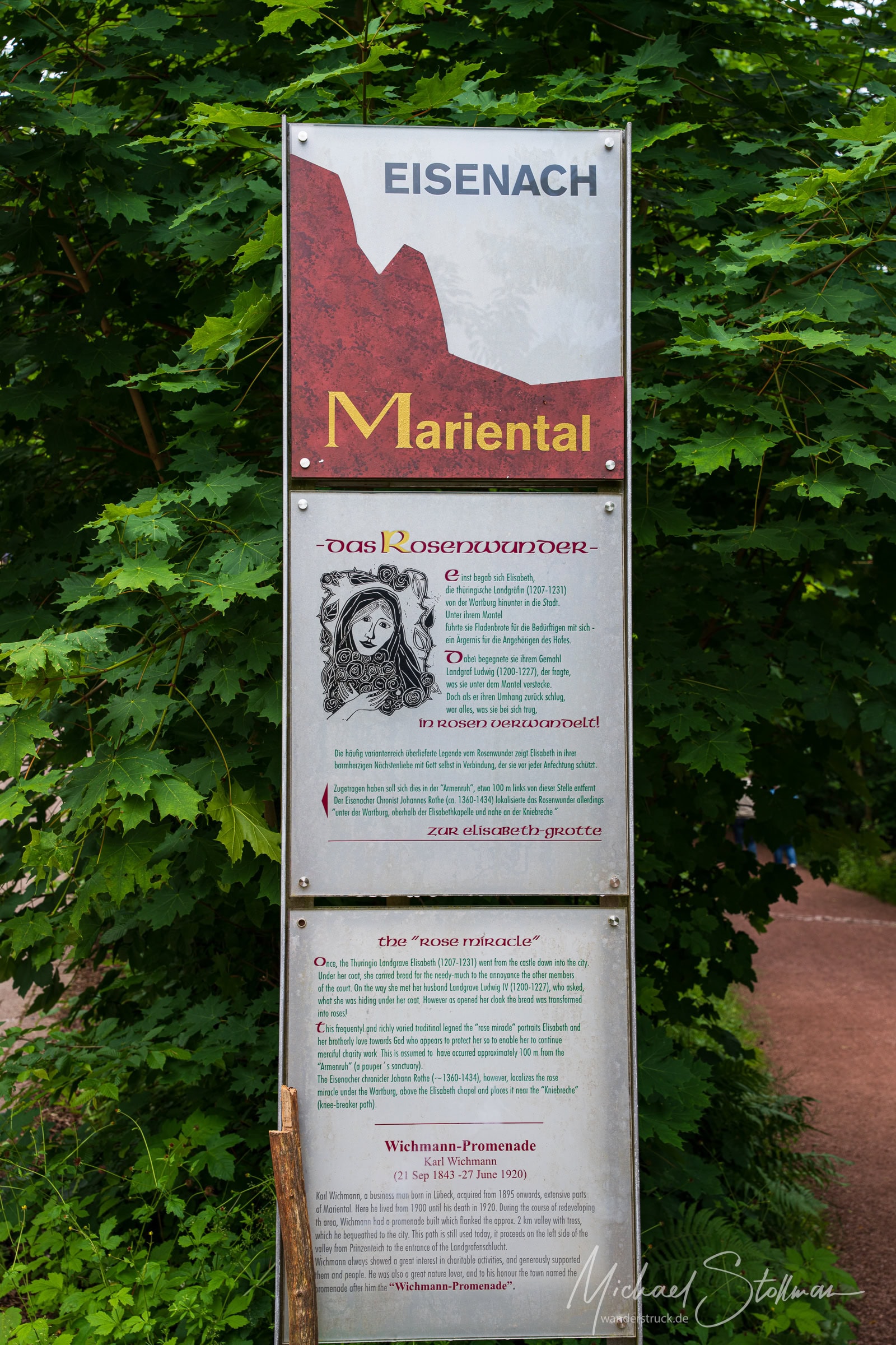 Im Laufe des Tages führten uns die Rätsel und deren Lösungen auf eine schöne, lehrreiche und kurzweilige Wanderung zu einigen interessanten Orten unterhalb der Wartburg. Das “unterhalb” sollte man jedoch nicht allzu wörtlich nehmen, denn an einer Stelle liefen wir direkt neben der Wartburg entlang.